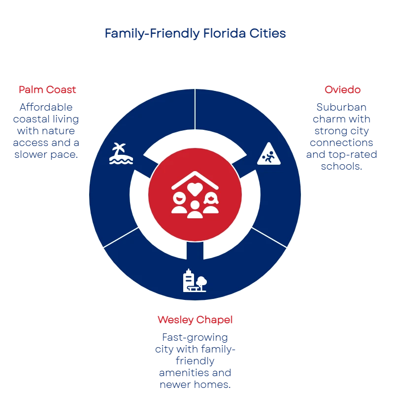 Let’s start with families looking for the best places to live in Florida, where safety, good schools, and outdoor fun are part of everyday life. What ties these places together? A balance of good schools, safe streets, growing job access, and room to breathe. Many families are drawn to them because they offer a middle ground: not too busy, not too rural.