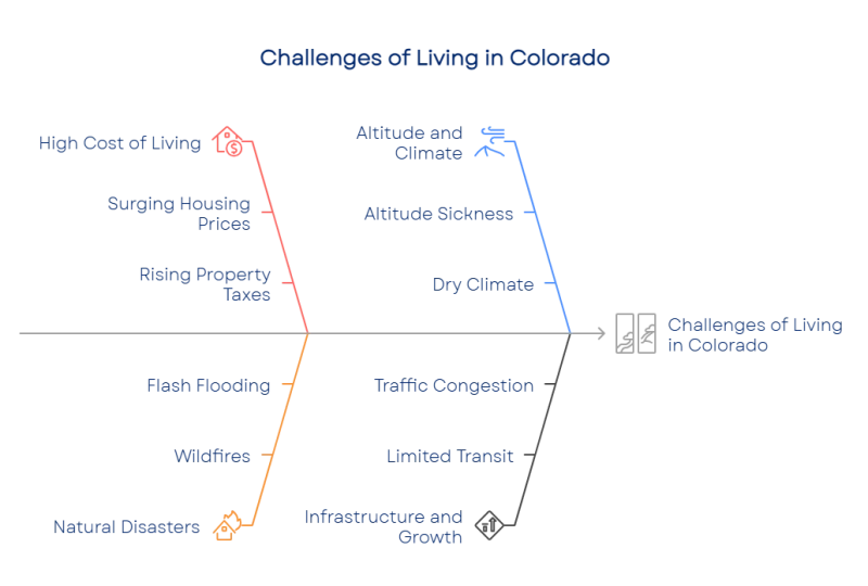 The state faces high housing prices and living expenses, especially in urban areas like Denver and Boulder.
