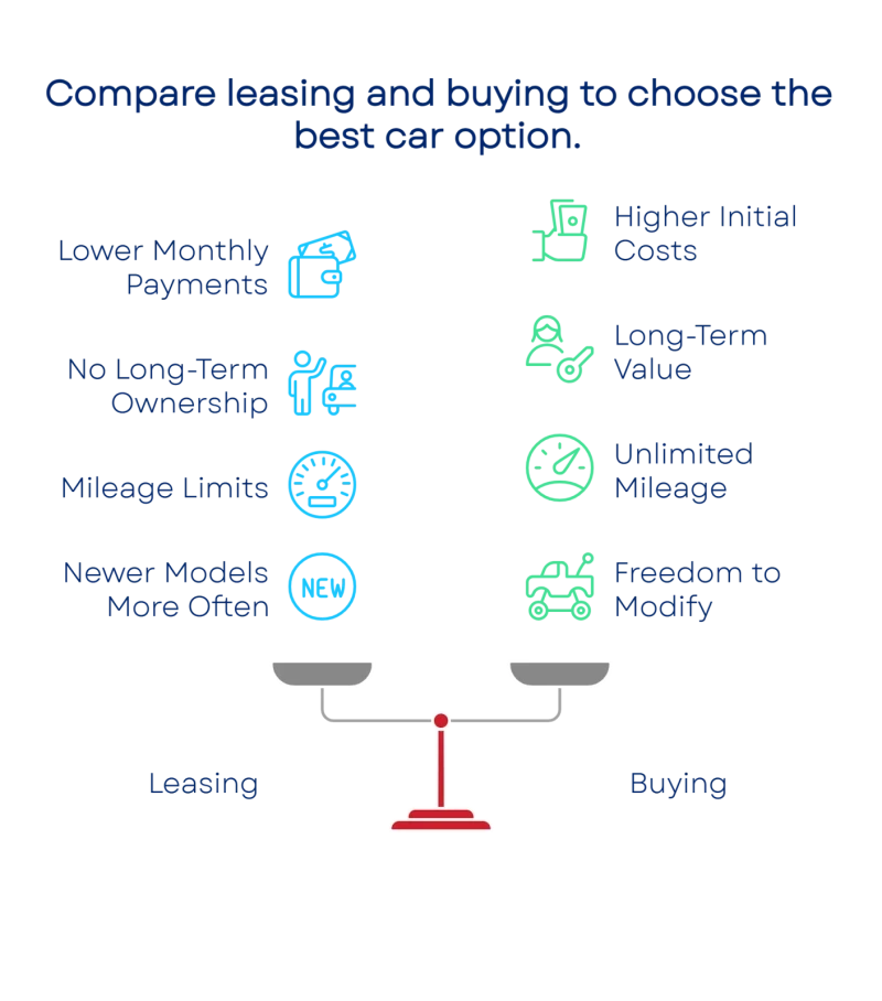 Ownership Goals: Buying suits long-term drivers who want customization and resale value; leasing fits those who prefer frequent upgrades.