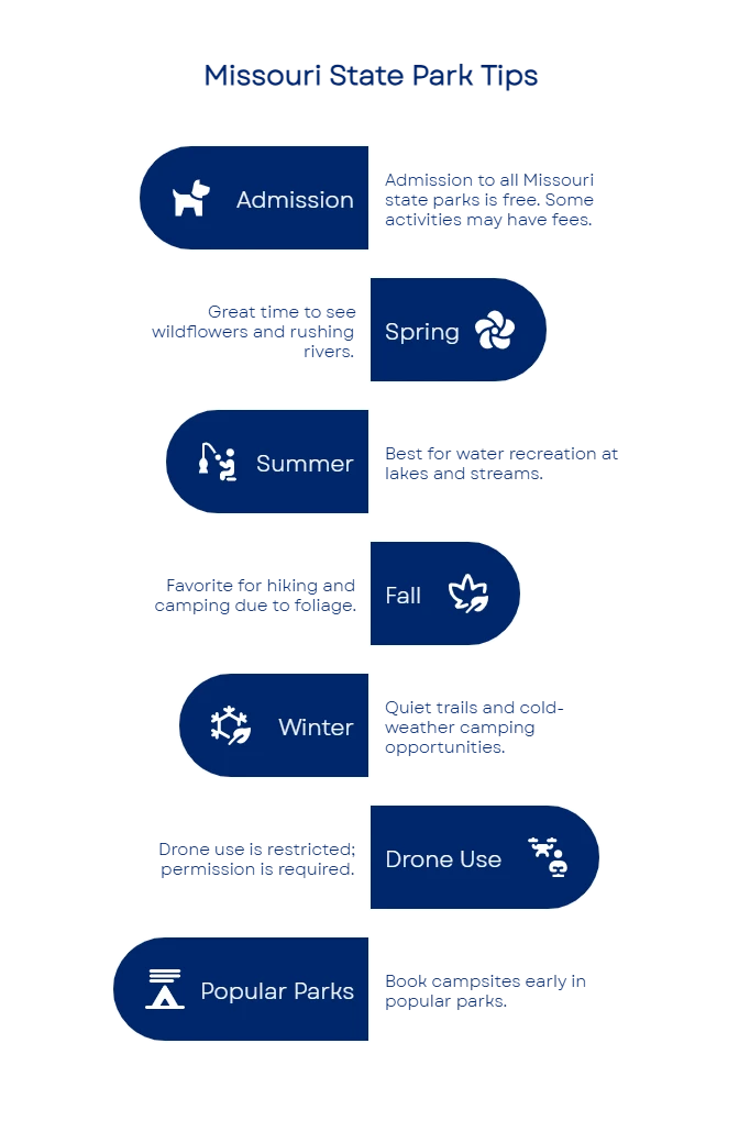 Visiting Missouri state parks is simple, but knowing a few key details can make your trip smoother. Since admission is always free, planning mainly comes down to timing, activities, and rules you’ll want to keep in mind.