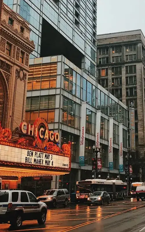 Chicago is located on Lake Michigan in Illinois. It's a huge city famed for its bold architecture, skylines, and iconic towers.
