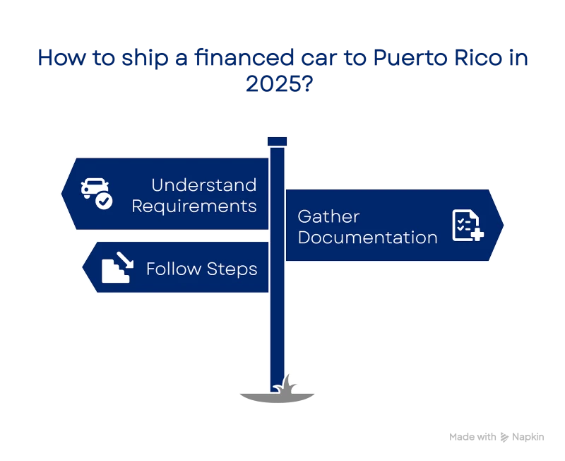 You need specific paperwork to ship a financed car to Puerto Rico. Missing documents will delay your shipment and create storage fees at the port.