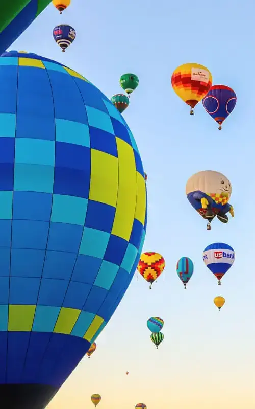The world's biggest hot air balloon festival, attended by more than 80,000 people each fall in Albuquerque, is held there. The festival began in 1973 in a parking lot with only 13 balloons and has expanded to fill a 365-acre park with more than 500 balloons.